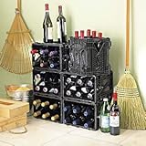 Be space-conscious and planet-conscious Our super-popular modular crate just got betterâit got green! Made from 100% recycled materials, the STORViNO Nero Wine Storage Container, now in black, has all the same space-saving benefits of the original, holding up to 6 wine bottles* compactly. Solid polyethylene construction with convenient hand slots make it easy to transport and safe to stack. Sold individually. Click on Product Manual to the left to see how this recycled product is made! Size: 10-1/4"H x 11-3/4"W x 8"D *This wine rack will accommodate bottles that have a diameter of 3-1/4" or less.